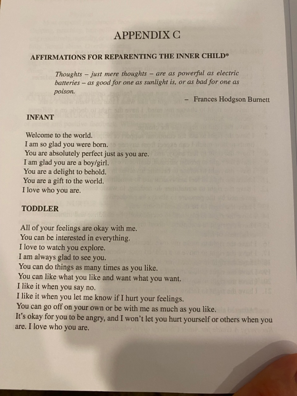 - What do I believe I needed more of as a child that I didn’t get? How can I give that to my inner child now, either through imagining an experience, or creating one in real life?